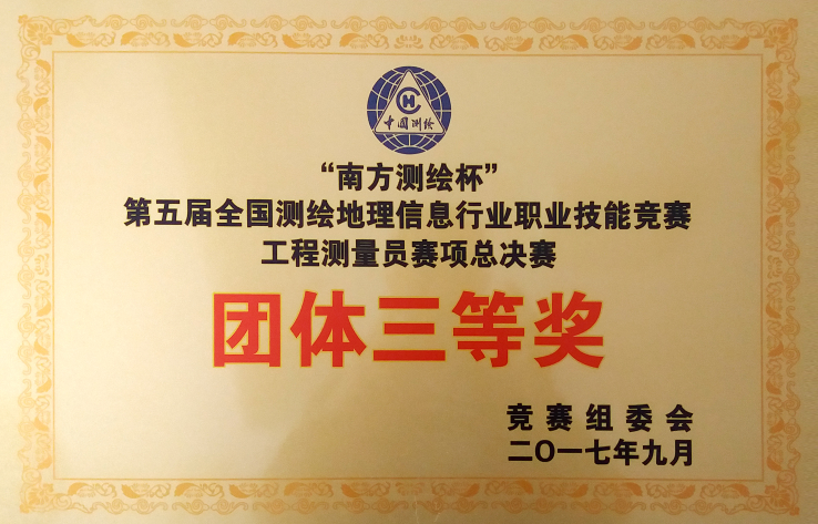 “南方測繪杯”全國第五屆測繪職業(yè)技能競賽團體三等獎