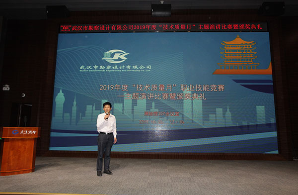 本屆競賽是一場跨專業(yè)、多工種的綜合性技能競賽,公司共有147名生產(chǎn)部門的專業(yè)技術(shù)人員參加了比賽,比賽分兩個階段,第一階段為職業(yè)技能競賽,分別設(shè)巖土工程(含設(shè)計、檢測、地質(zhì)環(huán)境)、基礎(chǔ)施工、測繪工程(含監(jiān)測)、土工試驗、不動產(chǎn)咨詢5類競賽項目,主要以專業(yè)技術(shù)知識考試為主,其中測繪工程和土工試驗兩個專業(yè)還進行了實操比賽,第二階段為主題演講比賽。