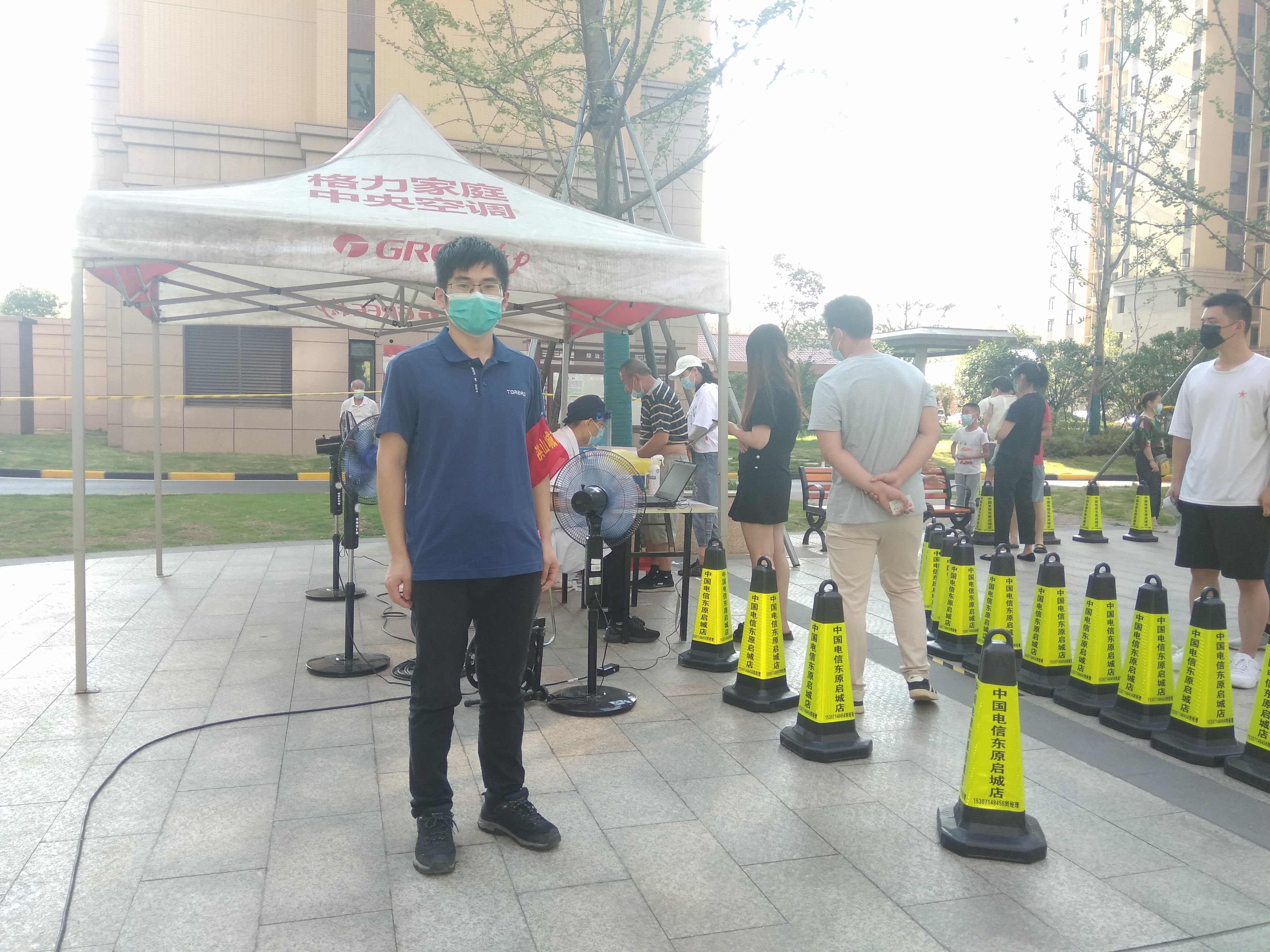 8月4日,公司黨員謝朋、蔣屹早上6:30便已到達(dá)社區(qū)統(tǒng)一安排的崗位上開始工作。據(jù)了解,勝利社區(qū)共有1998戶住戶,為避免人員密集,社區(qū)在全社區(qū)設(shè)置了3個(gè)核酸檢測點(diǎn),分時(shí)分批組織居民檢測。“請大家戴好口罩,保持好安全距離!”“請有序排隊(duì)等待檢測,如有身體不適,請盡快聯(lián)系志愿者!”在炎炎夏日的高溫下,黨員們耐心地向社區(qū)居民告知注意事項(xiàng),維護(hù)好現(xiàn)場秩序,組織登記、測量體溫,每時(shí)段檢測完成后及時(shí)疏散,確保核酸檢測安全、有序進(jìn)行。通過一天的努力,勝利社區(qū)3個(gè)核酸檢測點(diǎn)分別檢測442人、479人、388人,共計(jì)1309人。
