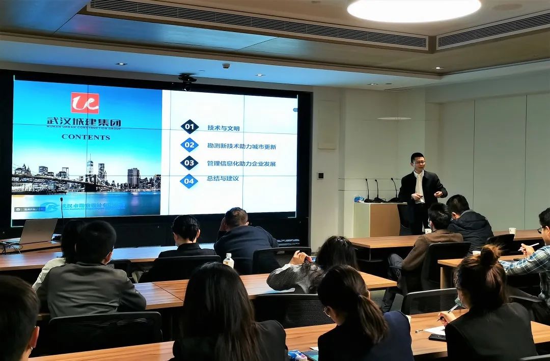 10月27日,公司總經(jīng)理施木俊應(yīng)邀作為授課講師在武漢城建集團(tuán)舉辦的第25期城建大講堂中授課。本次授課以“勘測(cè)與信息化新技術(shù)助力城建集團(tuán)高質(zhì)量、跨越式發(fā)展”為題,系統(tǒng)闡述了公司勘測(cè)與信息化技術(shù)在助力城市建設(shè)、更新,契合集團(tuán)設(shè)計(jì)咨詢(xún)板塊業(yè)務(wù)發(fā)展中的支撐作用。城建集團(tuán)總部各部門(mén)及所屬單位共計(jì)近50人參與交流和現(xiàn)場(chǎng)互動(dòng)。