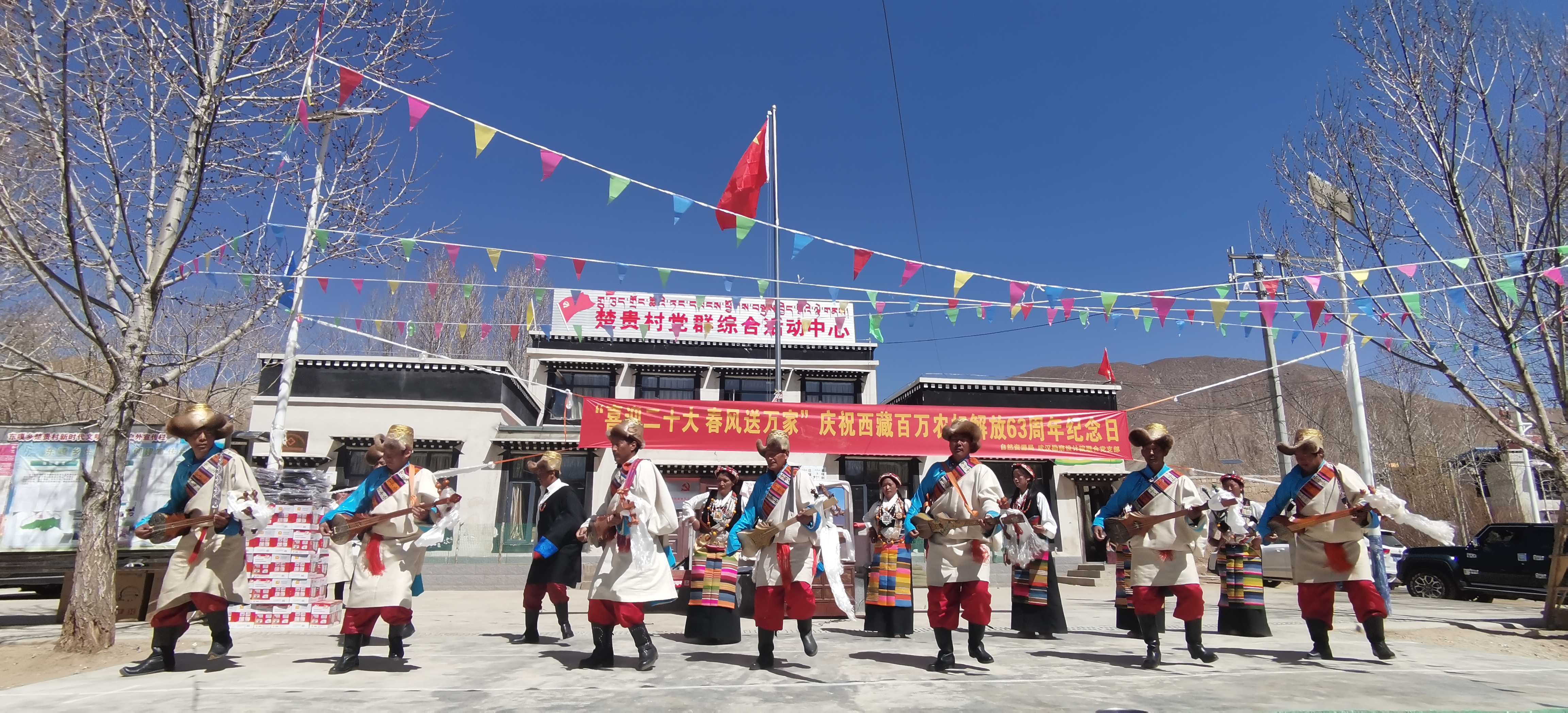 為慶祝西藏百萬農(nóng)奴解放63周年,充分展現(xiàn)西藏民主改革以來社會經(jīng)濟發(fā)展取得的突出成就,3月27日上午,項目黨員突擊隊參與了桑珠孜區(qū)自然資源局、東嘎鄉(xiāng)楚貴村黨支部及駐村工作隊聯(lián)合開展“建設(shè)美麗幸福西藏,共圓偉大復(fù)興夢想——紀念西藏百萬農(nóng)奴解放63周年”聯(lián)合主題黨日活動。