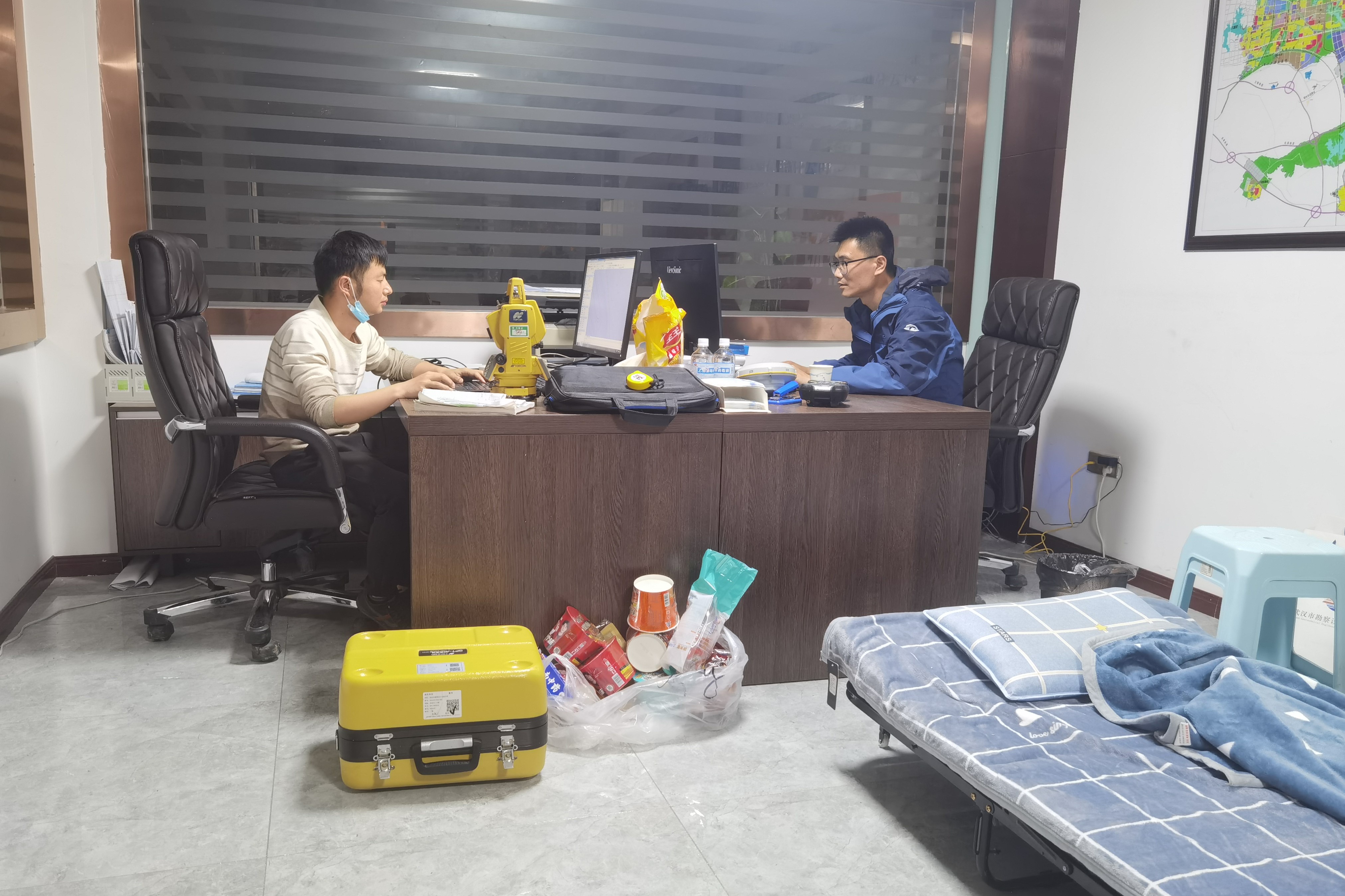 20日下午18:00,沙文東帶領項目團隊趕到現(xiàn)場,與鄂州市臨空經濟區(qū)管委會相關部門進行對接。為搶抓工期、確保進度,沙文東在現(xiàn)場立即開展了工作部署,所有項目人員迅速進入工作狀態(tài),挑燈夜戰(zhàn),當晚便完成了5萬平方米的測繪工作任務。21日—24日,項目人員在做好自身防疫的同時,加班加點推進剩余測繪任務,并通宵趕制圖紙,期間還按照要求完成了測淤泥底標高、開挖水渠底標高、控制測量等工作任務。25日上午,在項目團隊人員的共同努力下,測繪圖紙成果順利按期交付,鄂州市臨空經濟區(qū)管委會領導對公司項目團隊敢為人先、逆風而行的精神給予了高度認可。