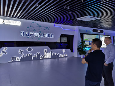 在總經(jīng)理王波、副總經(jīng)理華中雄等人的陪同下,測(cè)繪公司一行人參觀了北斗產(chǎn)業(yè)創(chuàng)新中心。王波總經(jīng)理從軟件平臺(tái)、數(shù)據(jù)研發(fā)、行業(yè)應(yīng)用、運(yùn)營(yíng)服務(wù)等方面對(duì)北斗產(chǎn)業(yè)的發(fā)展與應(yīng)用情況進(jìn)行了詳細(xì)介紹,并表示湖北地信集團(tuán)致力于積極推動(dòng)北斗和其他領(lǐng)域的融合發(fā)展,形成了初具規(guī)模的產(chǎn)業(yè)鏈,充分基于衛(wèi)星定位、云計(jì)算、物聯(lián)網(wǎng)等新技術(shù),開(kāi)拓了政務(wù)、民生、產(chǎn)業(yè)三大類十余項(xiàng)的智慧應(yīng)用,已逐漸深入到城市建設(shè)和管理的各個(gè)領(lǐng)域。